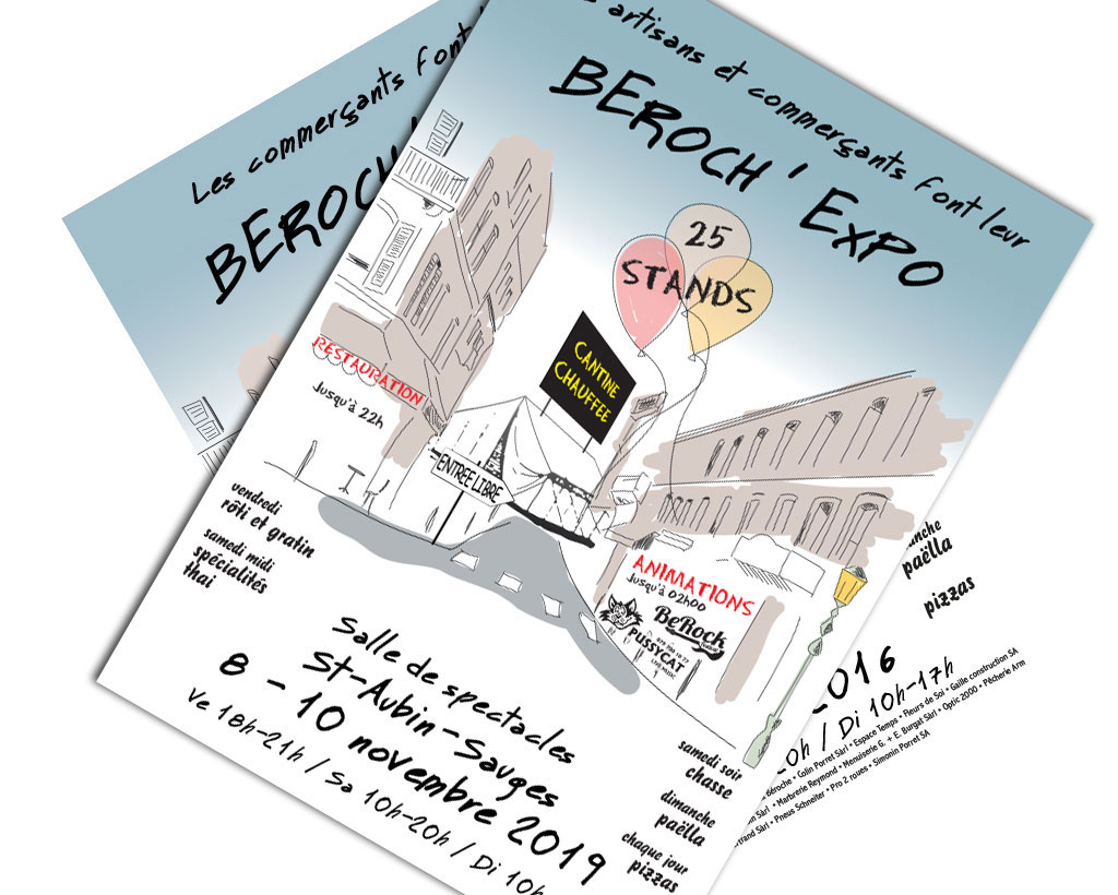 Pour la deuxième édition de Beroch’Expo, nous avons étoffé la communication visuelle en y ajoutant un livret de fête et un site internet, construit durant la manifestation.